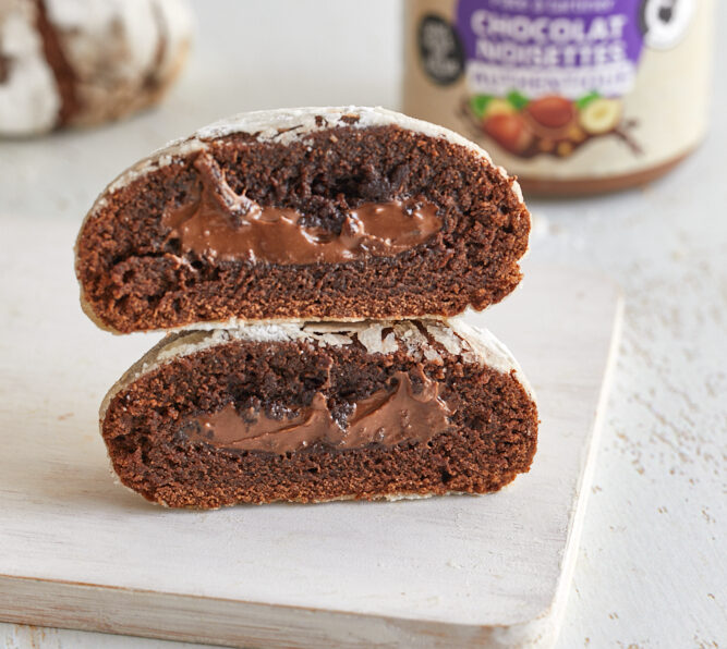 Recette pour 12 biscuits •1 pot de Nucellina Authentique ou Noisette chocolat orange •110 g de beurre pommade •110 g de sucre semoule •2 œufs •1 pincée de fleur de sel •180 g de farine •50 g de cacao en poudre non sucré •du sucre glace -Former 12 boules de pâte à tartiner de 3 […]