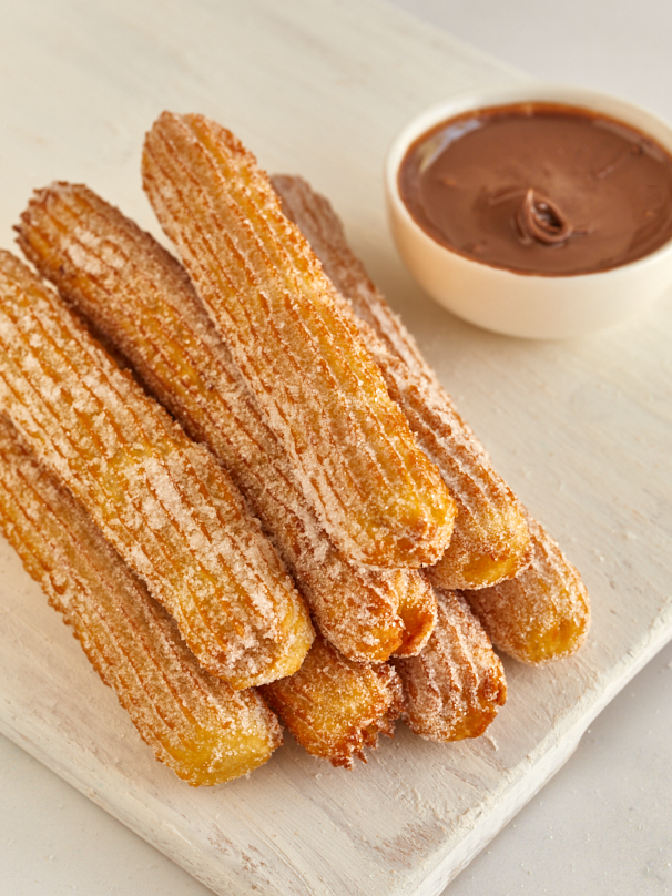 •210 g d’eau •200 g de farine T55 •Huile de friture •Sucre semoule •Nucellina Authentique Faire bouille l’eau, ajouter une pincée de sel, et verser sur la farine dans un bol, mélanger avec une cuillère en bois ou la feuille du robot ménager. Laisser refroidir 4/5 minutes et utiliser dans une presse à churros ou […]